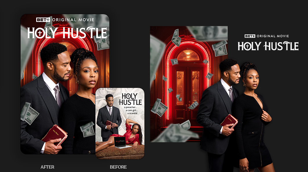 I led the creative development and visual direction of key art for BET+ originals and major content drops, ensuring each title had a distinct personality while still feeling undeniably BET+. That meant building a repeatable creative standard across typography, composition, color, and messaging, then adapting it title by title for streaming, social, and partner placements.